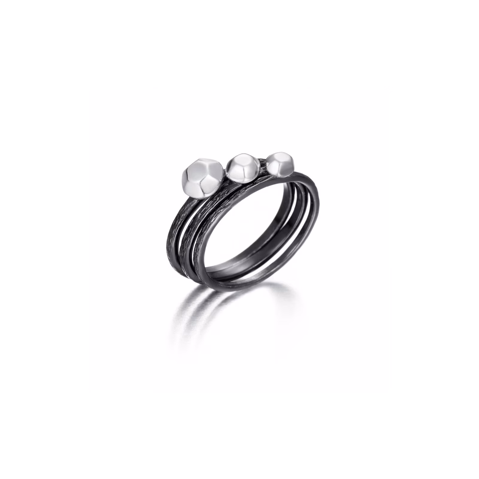 CELESTIAL collection Ring in Sterling Silver organic texture with Black Ruthenium