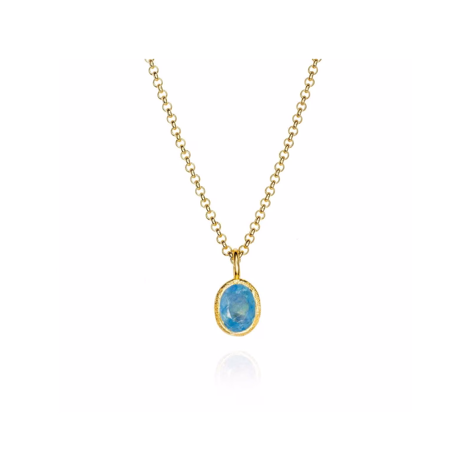 Colgante aguamarina de la colección ZEN de Plata de Ley 925 con acabado texturizado y Baño de Oro 18k. La cadena se vende por separado/