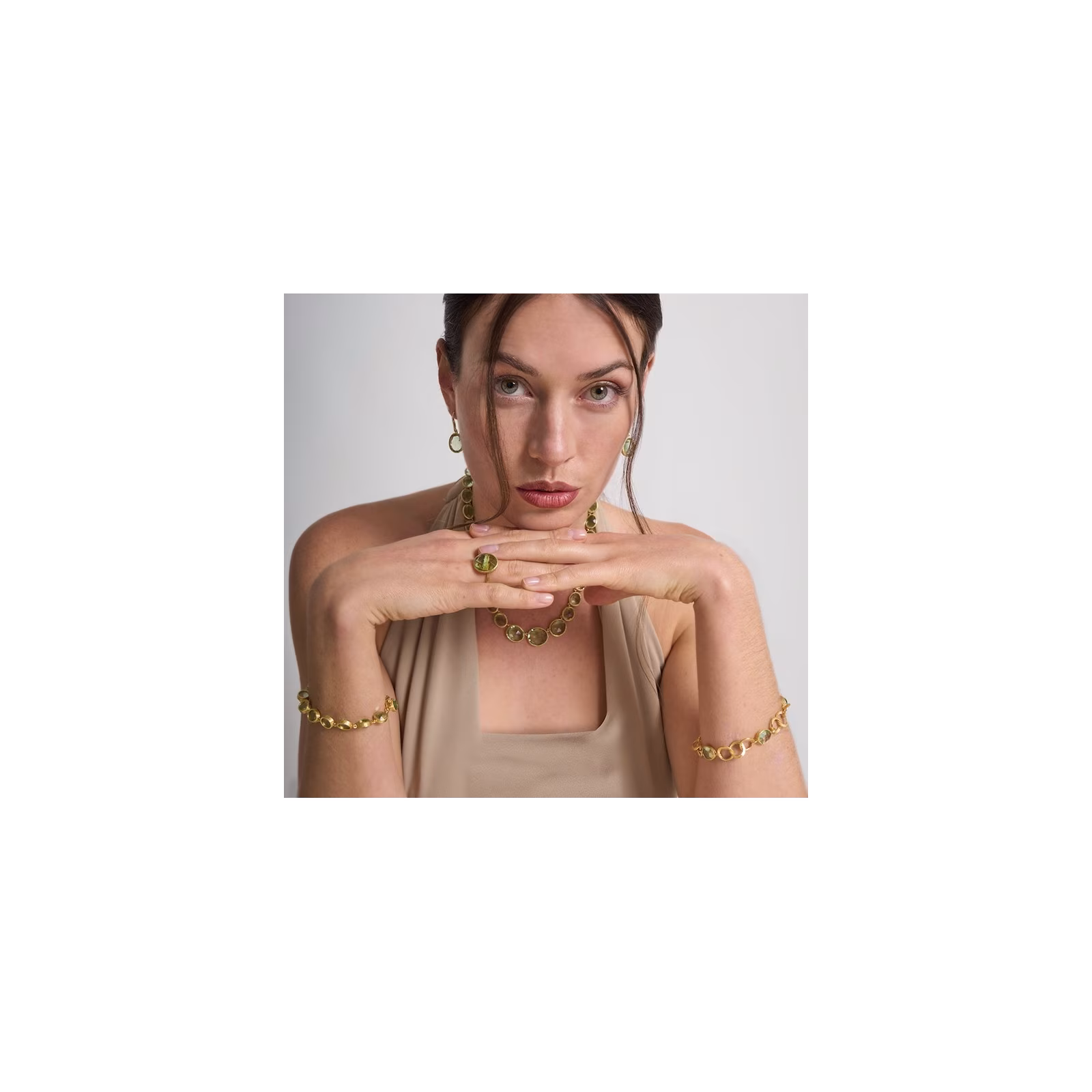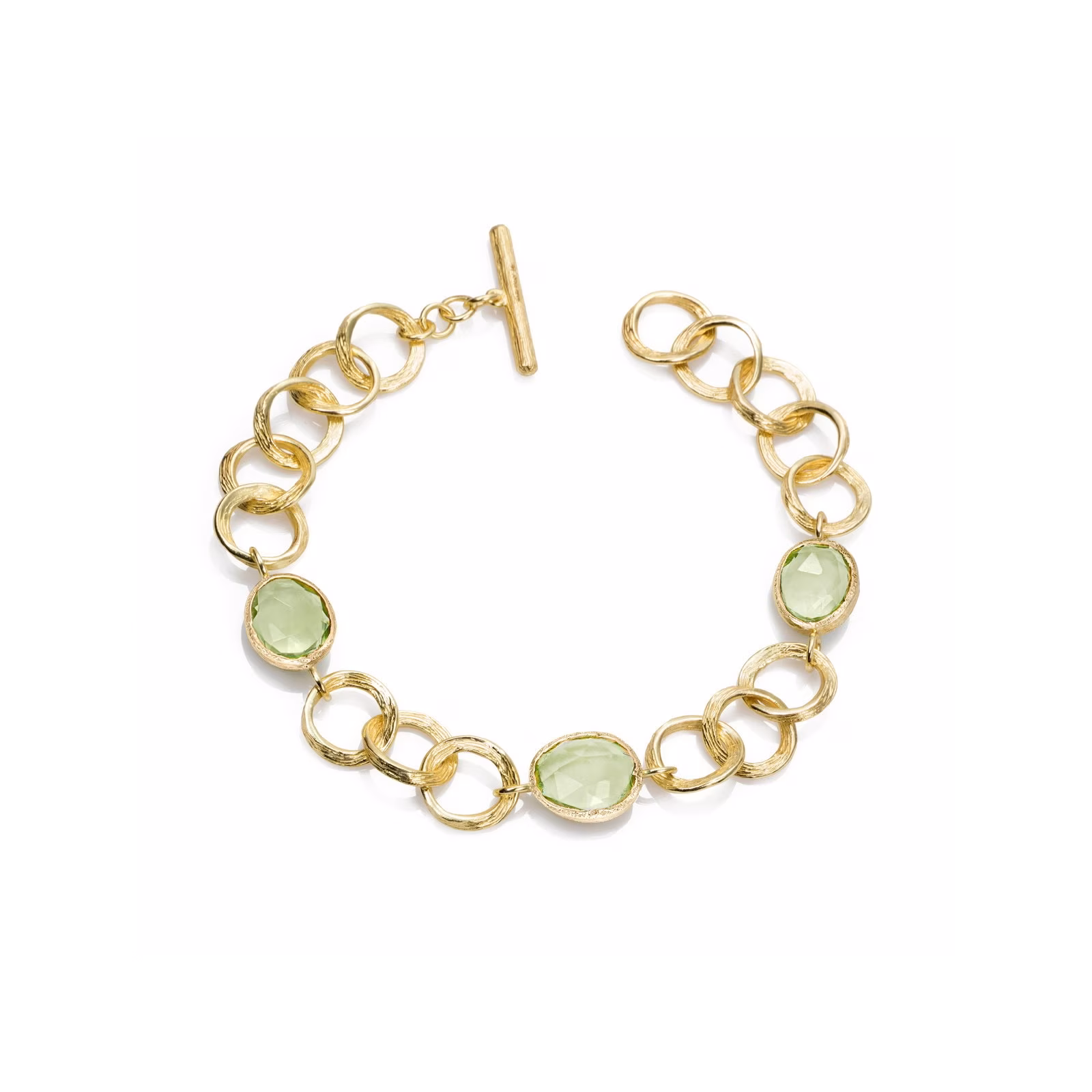 Pulsera de eslabones y Amatista verde con baño de oro 18k