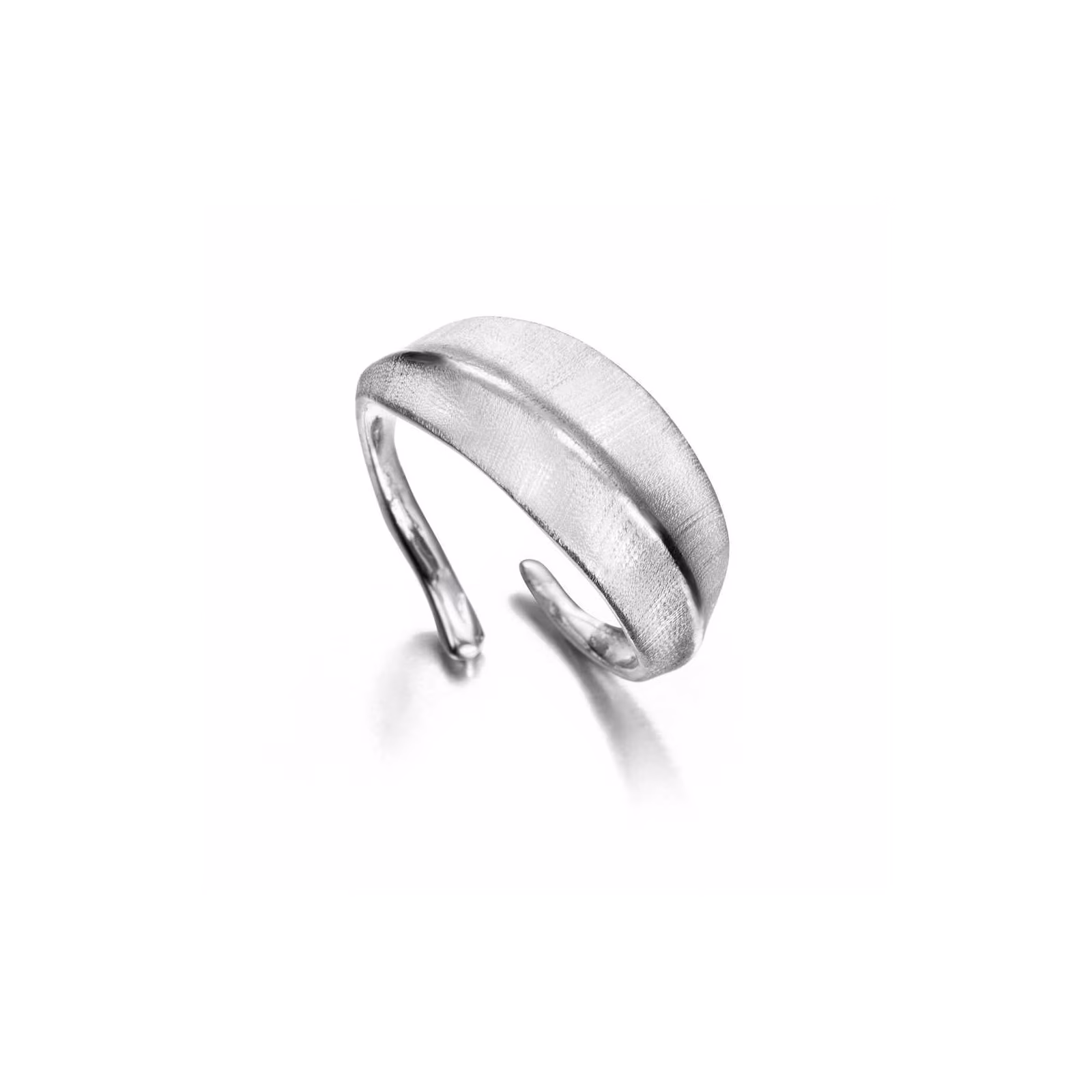 Anillo en plata de ley 925 con un diseño orgánico inspirado en la naturaleza. Su forma fluida y sus suaves relieves evocan la textura del bosque, aportando elegancia, movimiento y carácter a la pieza. Perfecto para el día a día o para acompañar looks más sofisticados.