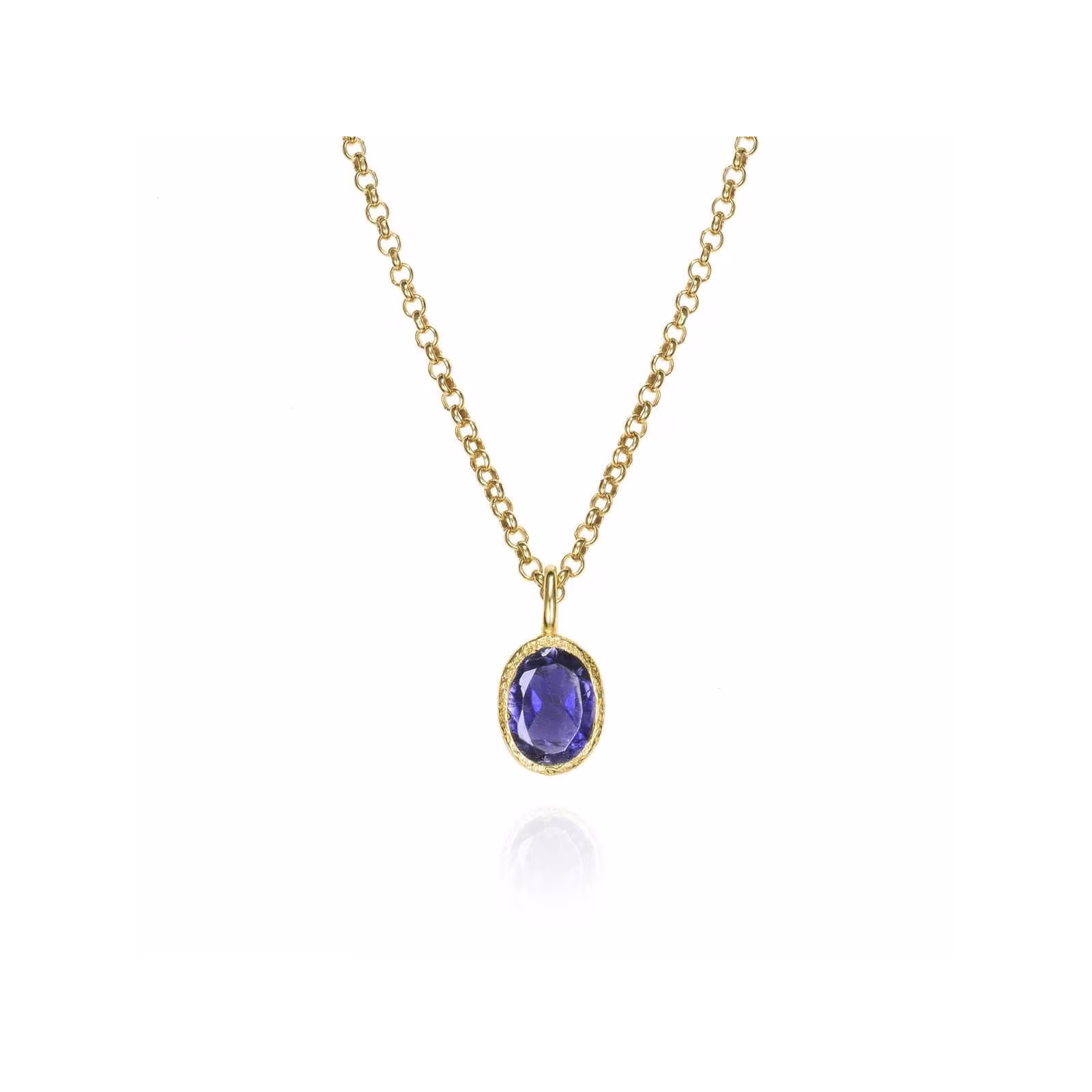Colgante zafiro de la colección ZEN de Plata de Ley 925 con acabado texturizado y Baño de Oro 18k. La cadena se vende por separado/