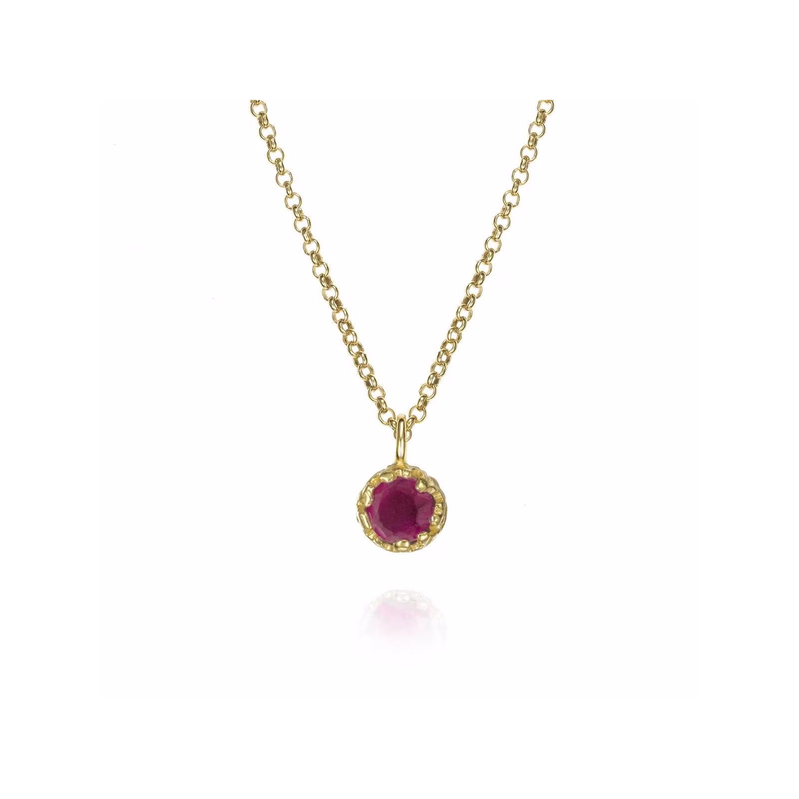 Colgante con piedra natural Rubí de la colección BLOOM – Birthstone. Diseñado por Jorge Revilla en plata de ley 925 con baño de oro 18k. La cadena se vende por separado. Símbolo de pasión y poder, piedra del mes de julio.