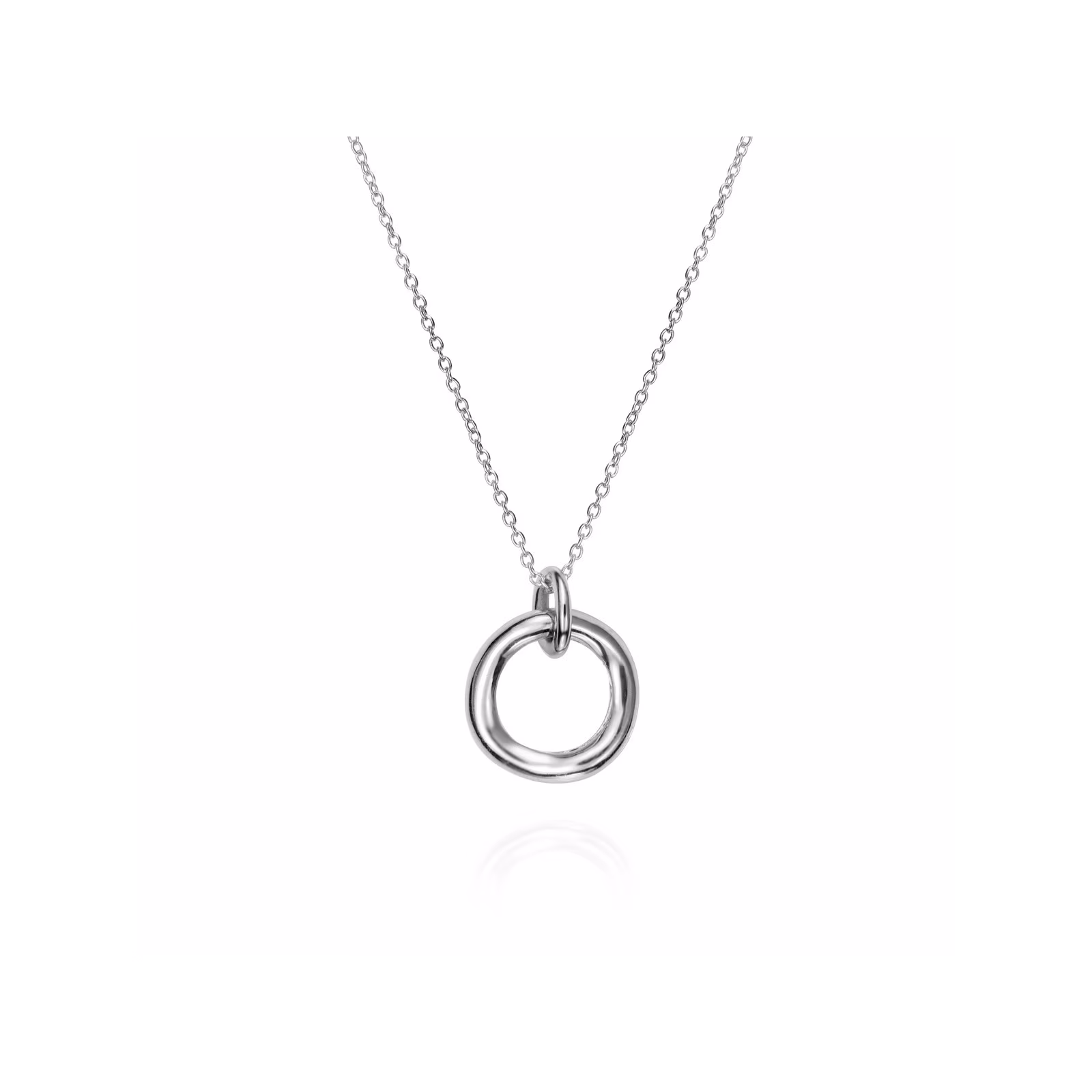 Collar de la colección Fun de Jorge Revilla, diseñado con un colgante de círculo irregular que aporta un toque moderno y desenfadado, combinando sencillez y estilo.