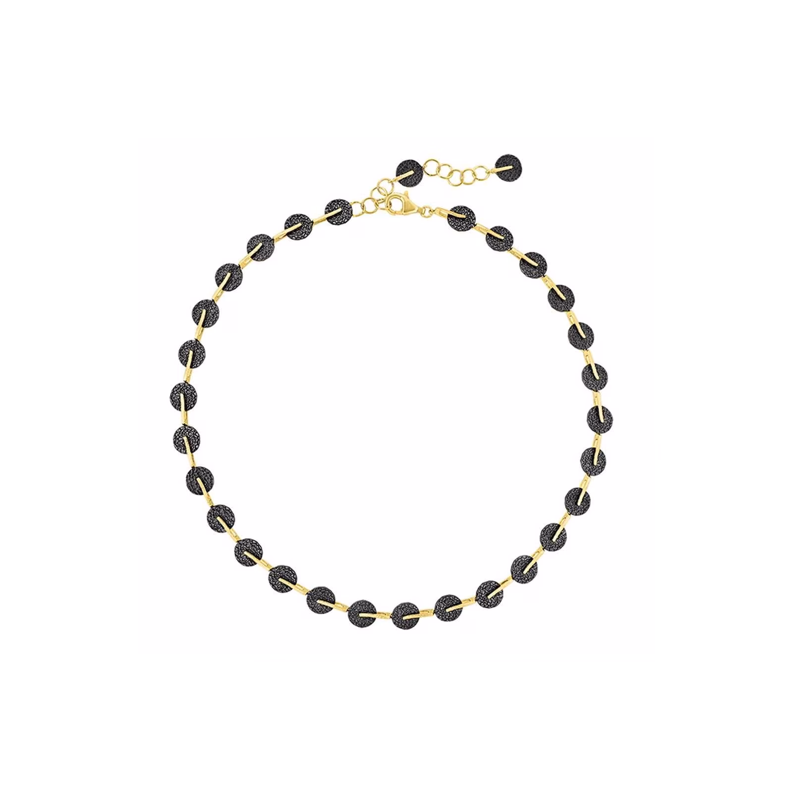 Collar de la colección KYMBAL de Plata de Ley 925 con acabado texturizado y baño de Oro 18k y Rutenio negro
