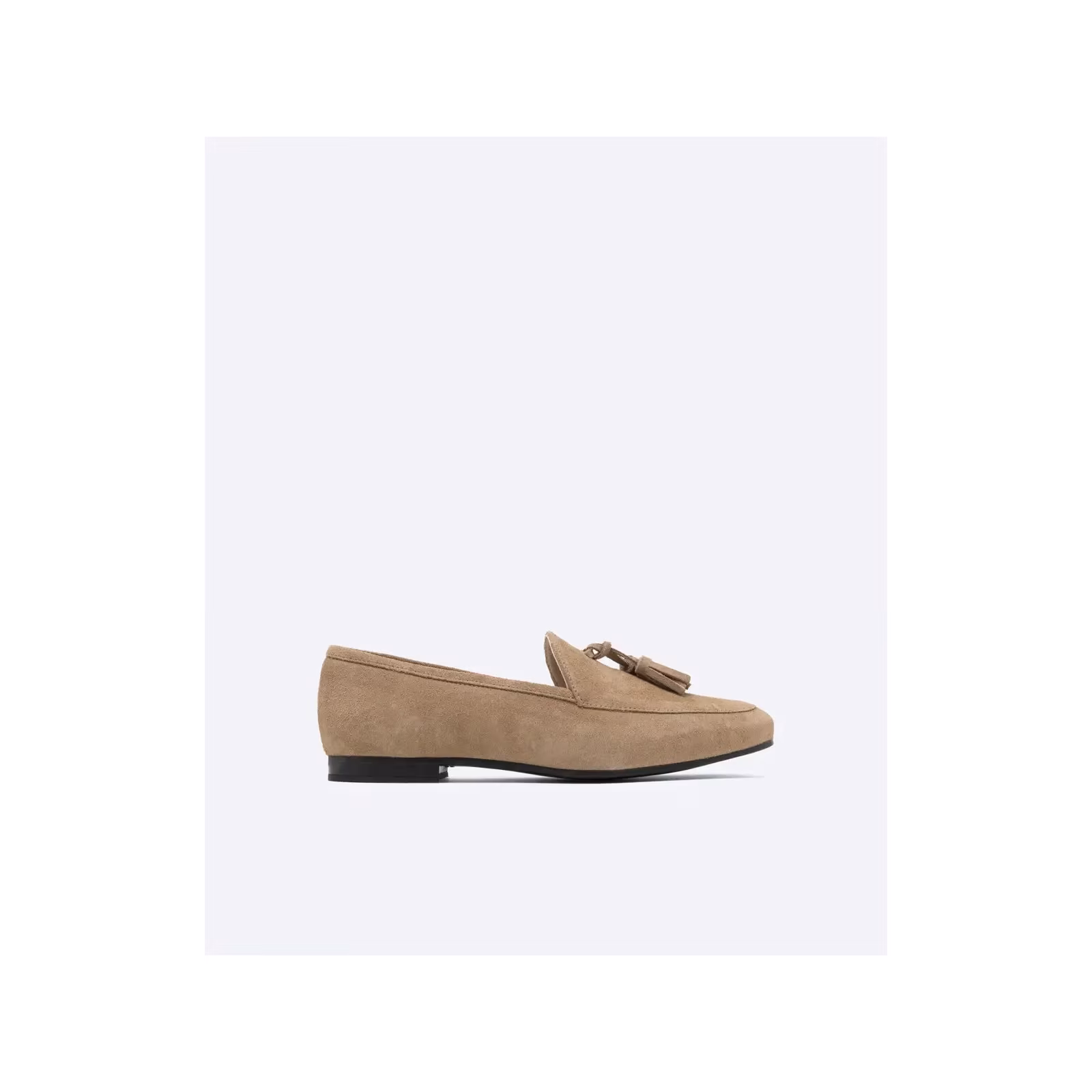 Mocasines de mujer modelo Beirut fabricadas en piel color arena con borlas de adorno .