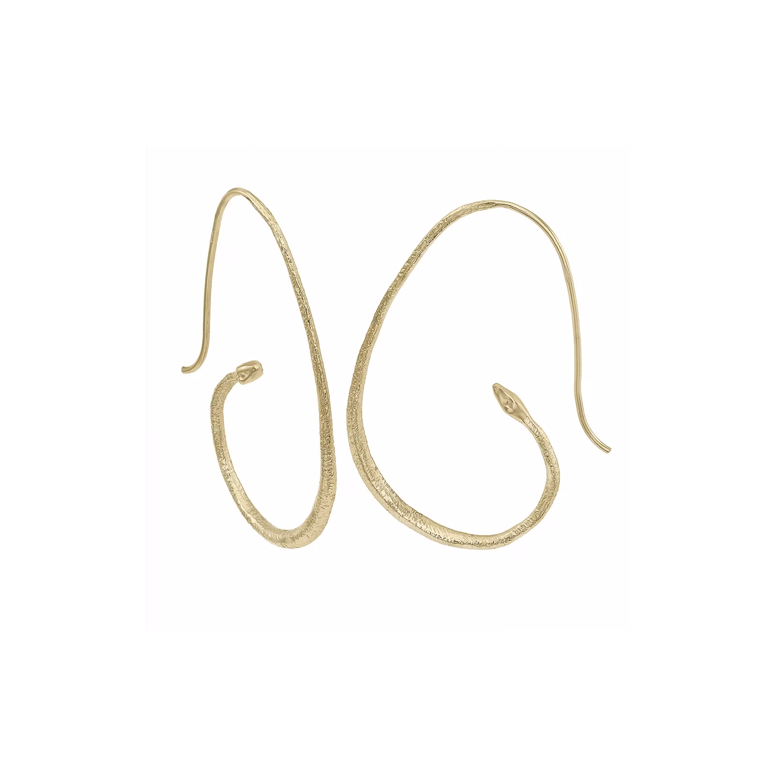 Pendientes de gancho en forma de serpiente, realizados en plata de ley 925 con baño de oro 18k. Su diseño transmite fuerza y elegancia, con un movimiento sinuoso que aporta sofisticación y carácter a cualquier look.