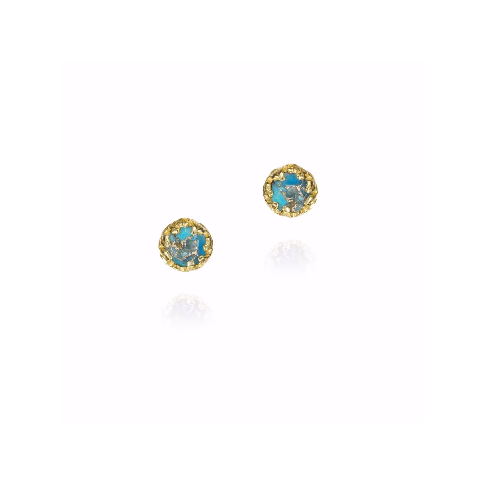 Pendientes de botón Turquesa de plata con baño de oro 18k