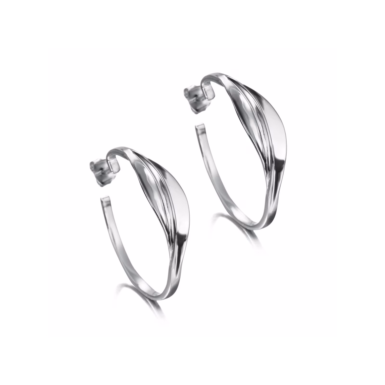 Pendientes aros de presión con diseño ondulado en plata de ley 925