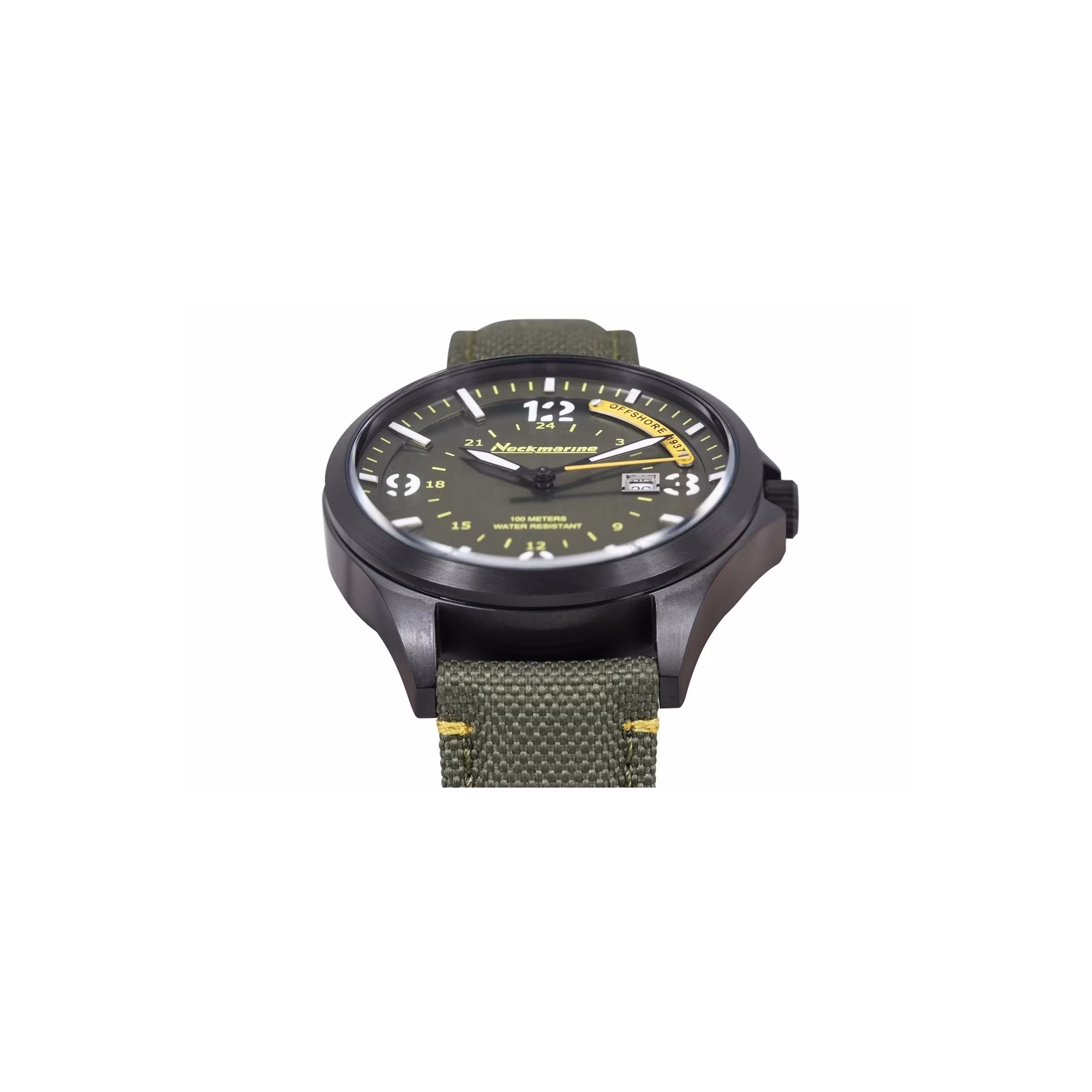 Reloj de aluminio cepillado para hombre de color verde con pulsera textil- Neckmarine –Offshore