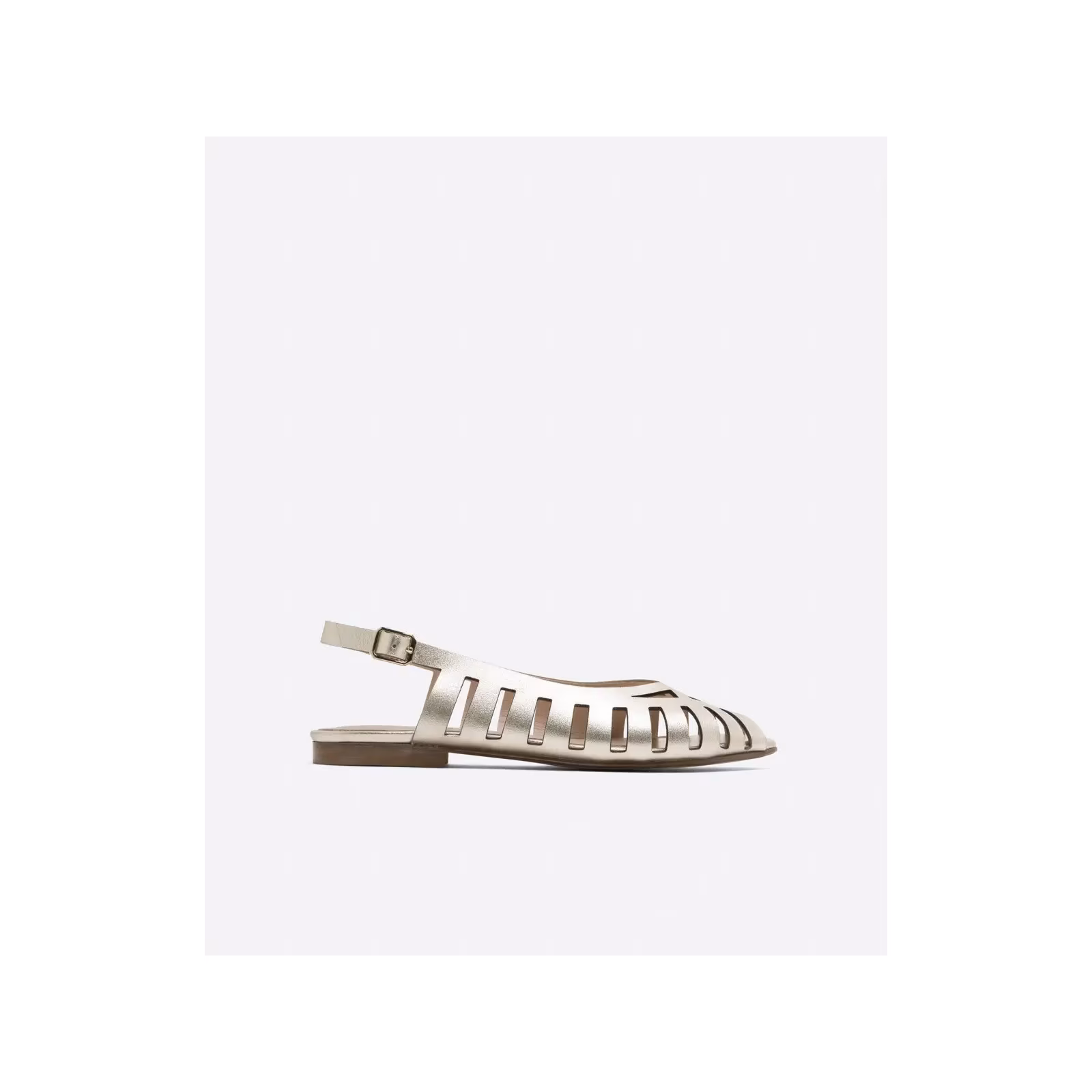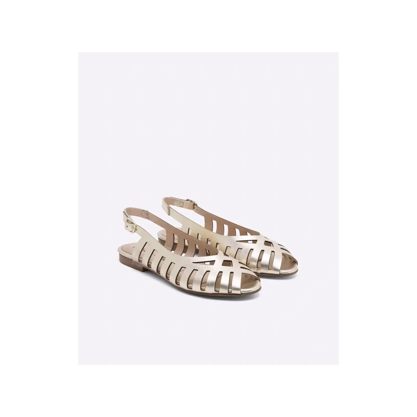 Sandalias planas modelo Doha fabricadas en piel troquelada color oro .