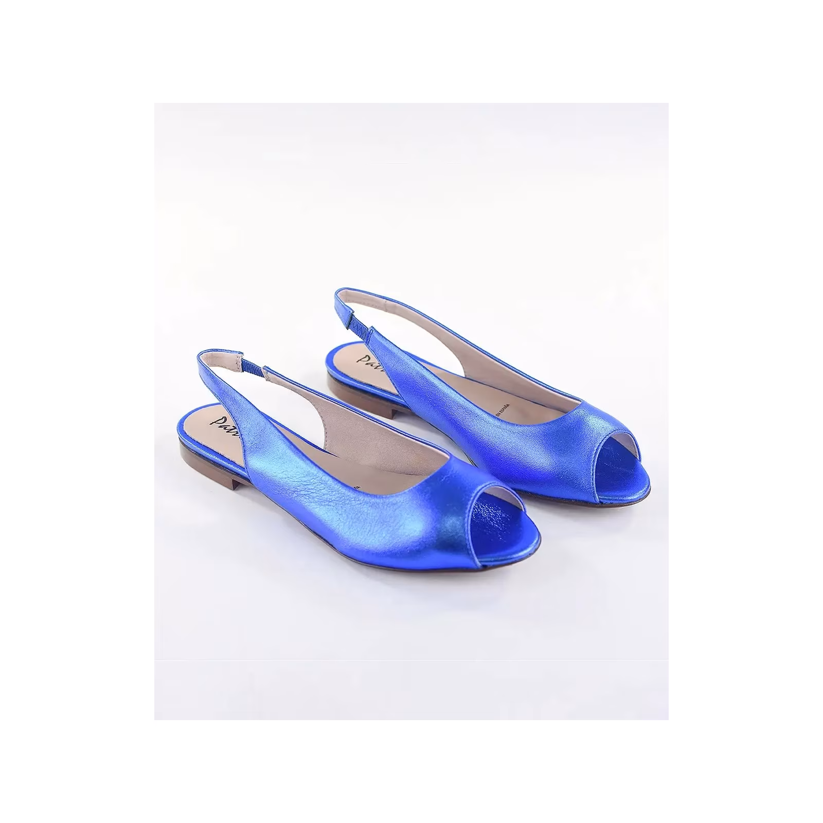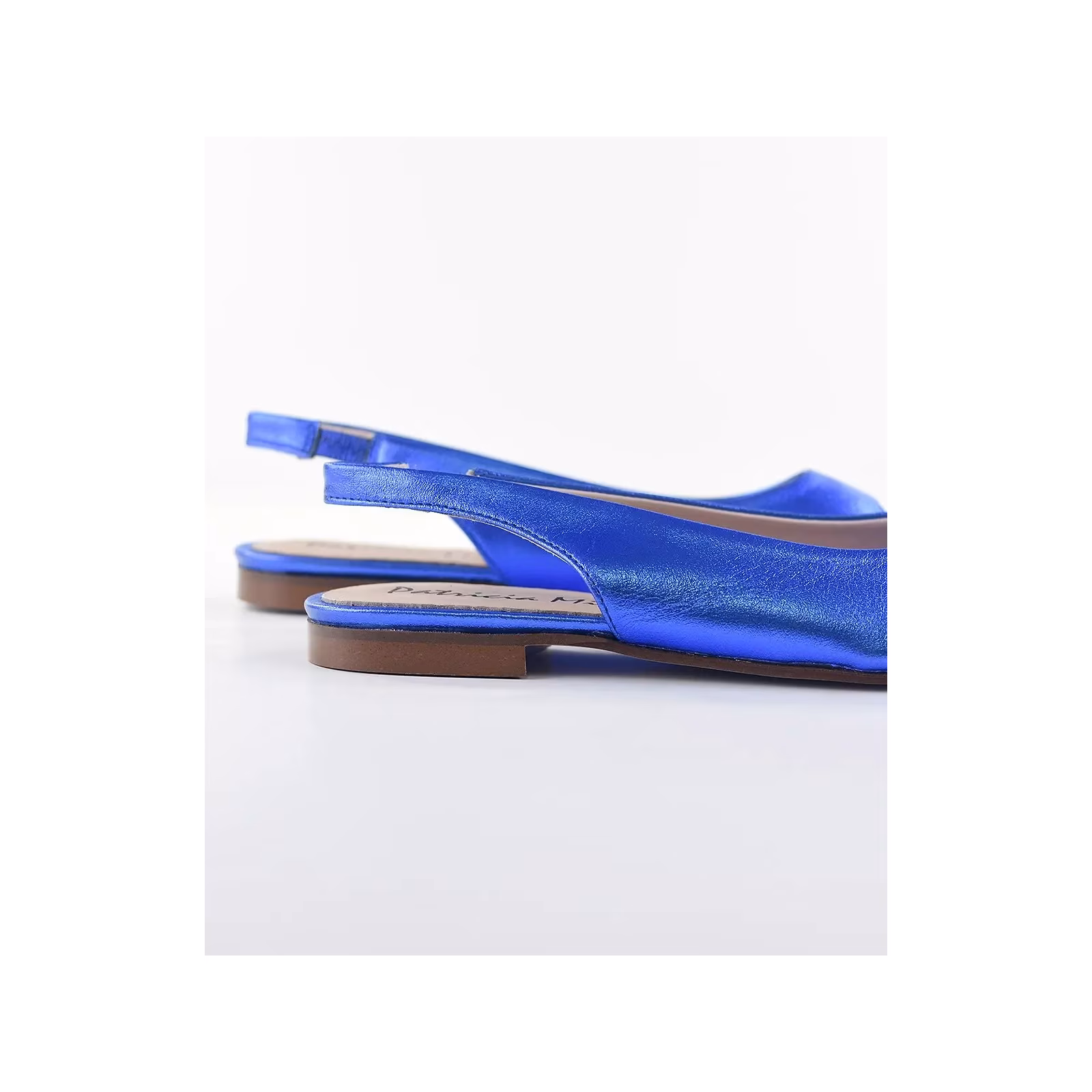 Sandalias planas de piel color azul metalizado Agueda 5543az fabricadas en España por Patricia Miller.